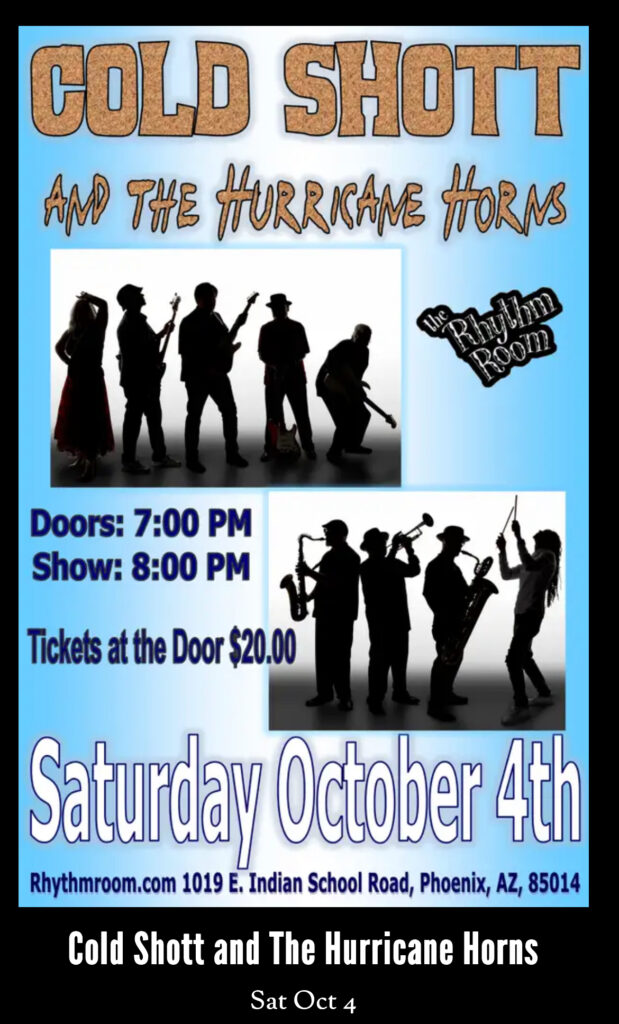 SATURDAY OCT 4h – The Rhythm Room – 8pm